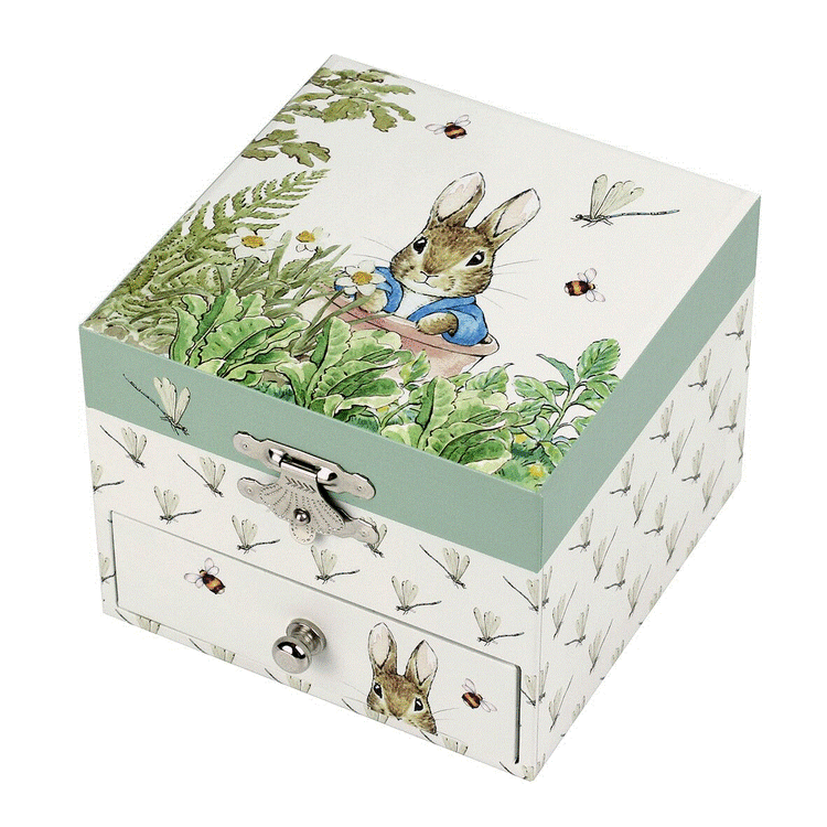 Fina smyckeskrin från Peter Rabbit, välj mellan olika varianter. En dansande kanin och en låda för alla skatter.